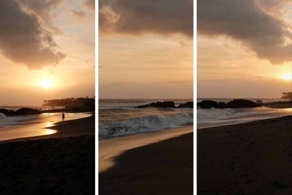 Three stunning views of Uluwatu — cliffside, surfers, and ice-cream vendor.